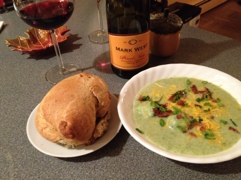 November 19, 2011 by rgroves Mark West 2009 Pinot Noir Broccoli cheese soup. Bacon and scallions. Herb bread. Rate this:Share this:Tweet Click to email a link to a friend (Opens in new window) Email Like Loading... Related