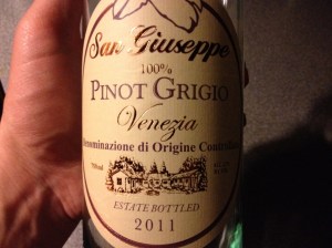 The San Giuseppi Pinot Grigio was, at least in 2011, a pretty nice, affordable Italian white. Definite rich taste and a fresh sniff for your nose…liked this one a lot and it seemed to approach the Margherita territory at a less expensive price point. I’m slightly behind the posting of this wine, though, so can no longer say what meal originally accompanied this nice breath of fresh air.