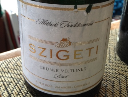 This sparkling brut we enjoyed on a gorgeous Saturday in August, circling Manhattan with our good friends as we set out on a wine tasting cruise. On a hot afternoon this brut and its citrus flavors were a great way to break our thirst. The Szigeti Gruner was paired with a Valency goat cheese from the Loire Valley of France. The cheese had a greyish rind and was very creamy…we sampled before the brut, after the brut, and were even encouraged by our host to taste the two together–all to great result. Some comments on the Szigeti: