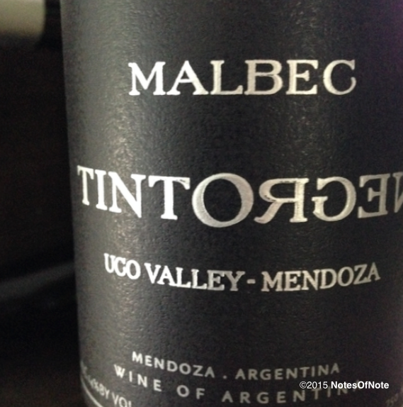 The TintoNegro had some good things going on. It’s sourced from the Uco Valley, a “cool climate” high-altitude Malbec, and is aged for nine months in French oak barrels. The vineyard’s approach yields some enticing fruit flavors and dark colors in the glass. You taste for sure black raspberry–dark fruit but a hint of tang–and a full, textured finish. This 2012 definitely has some oomph to it.