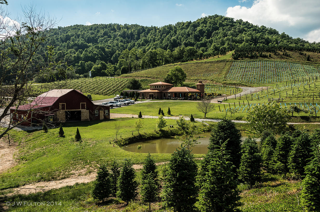 Near the Pisgah National Forest of Newland, North Carolina, are the Linville Falls and their namesake winery, both of which we visited on this beautiful day of our summer vacation. The state maintains well-traveled—and well-groomed—hiking trails that must bring thousands of visitors to the Falls each year; far fewer visit the winery I’m sure.