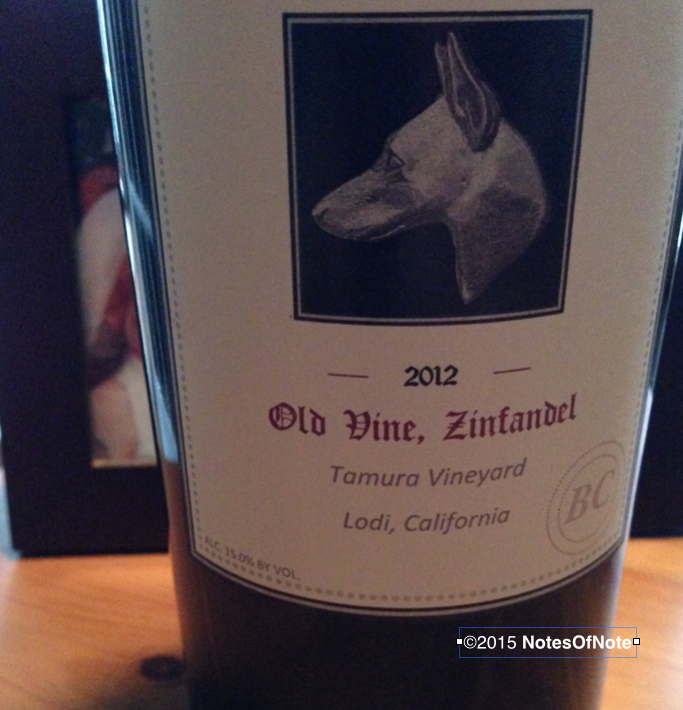 2012 Old Vine Zinfandel, Tamara Vineyards’ Baron Cooper Wines, Lodi, California, USA.