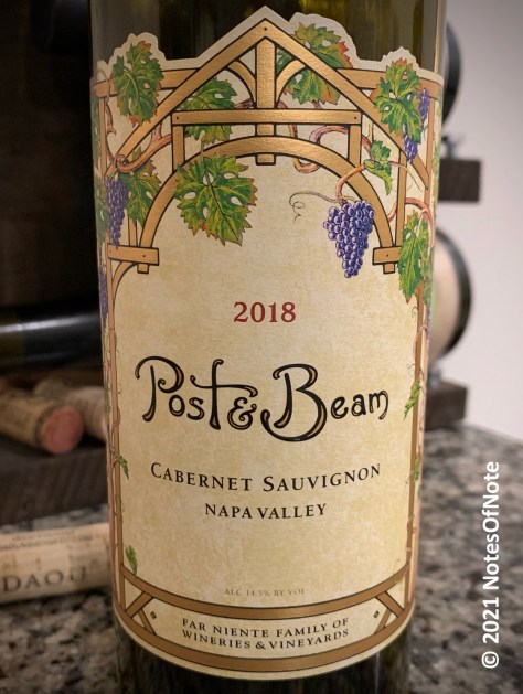 If you’re an oenophile of any sort, you probably know Far Niente by name, reputation, or at perhaps its signature label. Yes, me too. When I first saw the 2018 Post & Beam and its attractive price tag I scooped up a few right away.