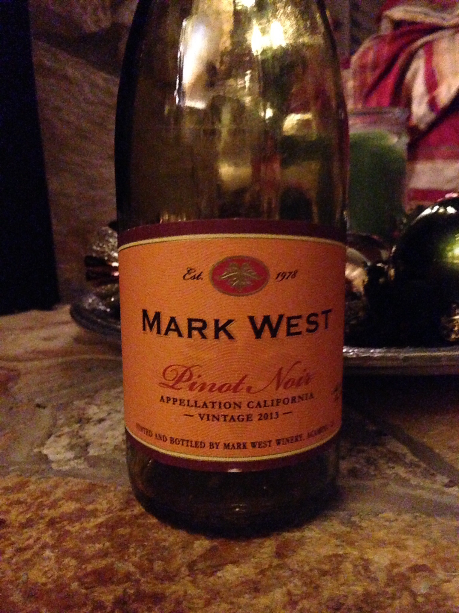 Well, it is definitely not quite a Pinot Noir–at least the Californians that we often sample–and it’s lighter than a Napa or Sonoma Cabernet Sauvignon. I even remembered to pop a quick photo of the bottle this year. It’s less spicy than the Syrahs we’ve been tasting from the West Coast, but probably closest to that profile. The 2012 vintage has a deep, purple-red color and some nice woodsy flavors that lurk just below a fruity surface. A good beverage, and one that started our cocktail hour and merriment.